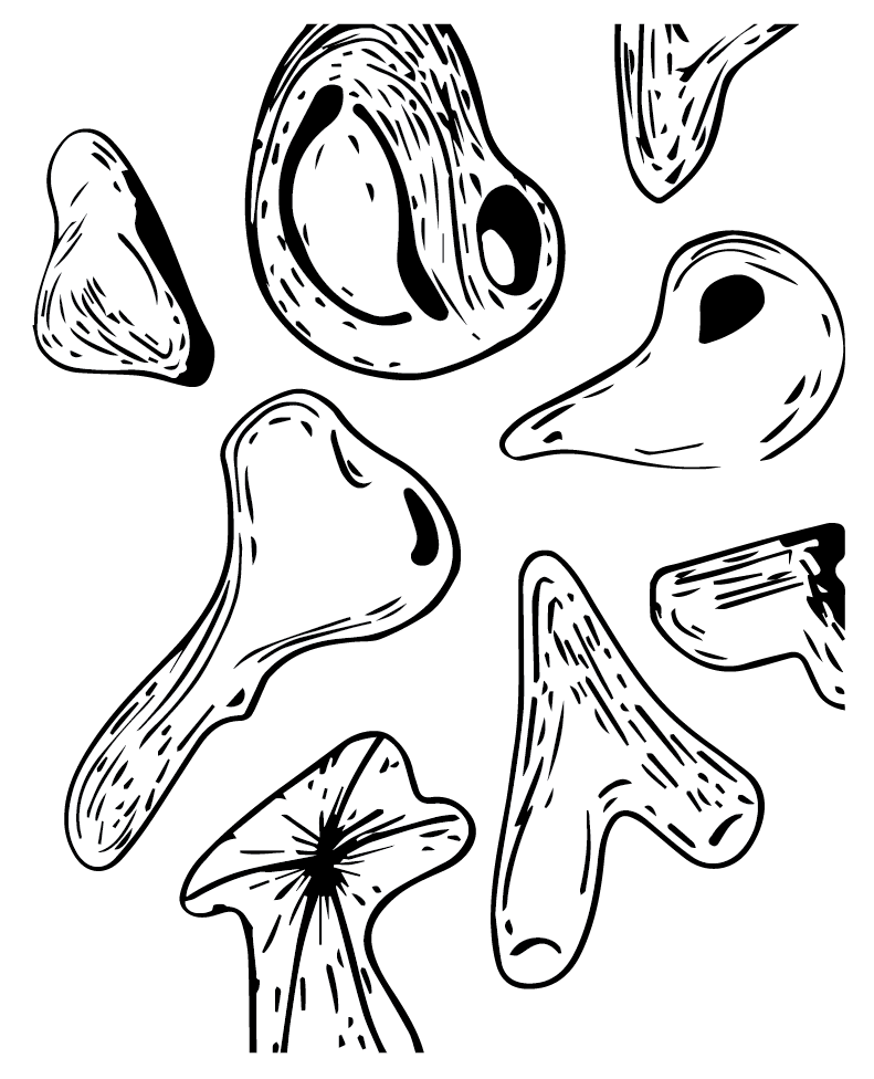 Fossils, Installation, linocut print, silk print, embroidery, 2023