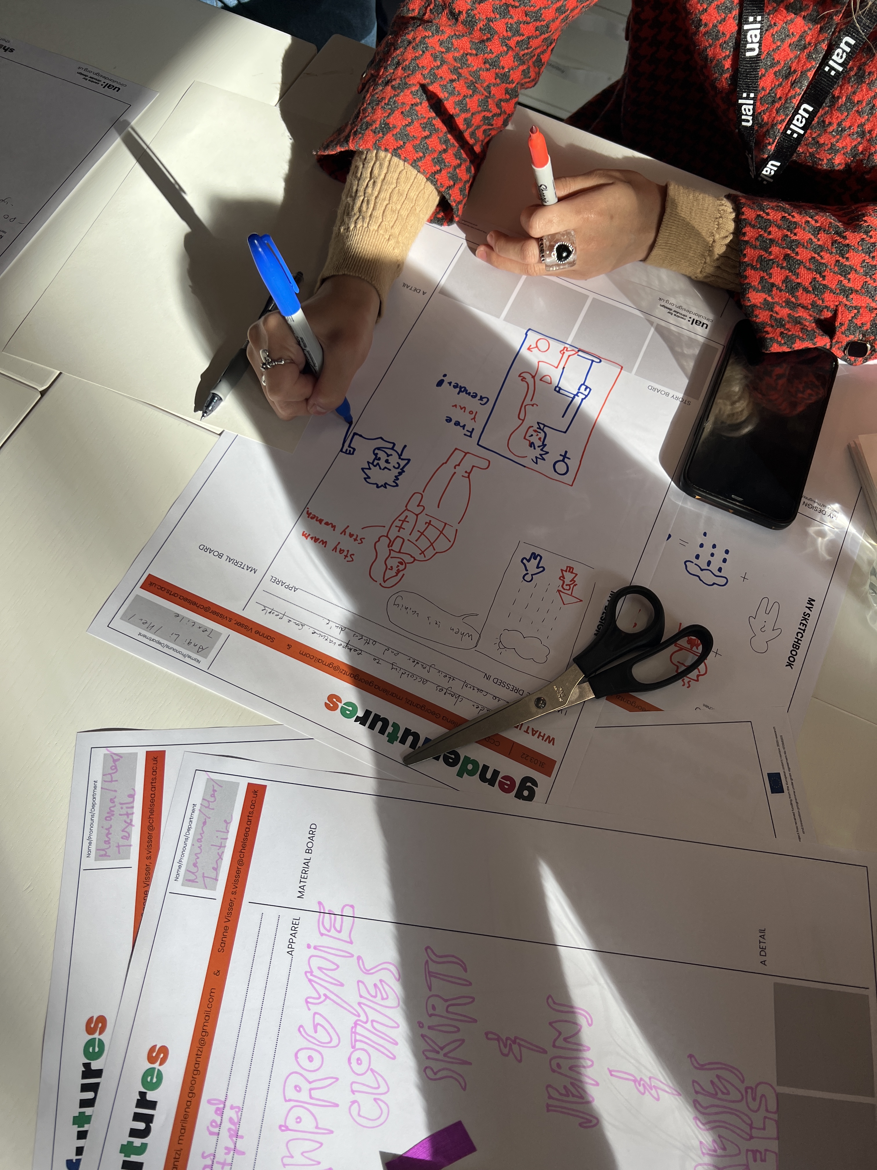 The workshop aimed to explore the concept of gender and its manifestation through clothes applying the principles of world building. Its agenda aimed to raise awareness on gender biases and empower self expression and personal vision, empower femininities to express their visions and open up the discussion on the system of clothing.