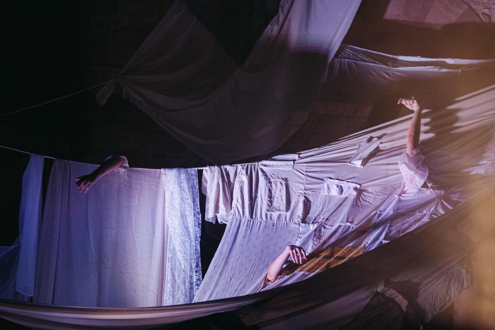 “If you don’t thrive in a place, think about whether it’s not your fault but your environment’s.” The group Stereo Nero Dance Co. with the performance “The Teardrop”, follows the life of the inhabitants of Mastichoria of Chios and analyzes their connection with the life cycle of “the tree that tears”. Through poetic images and kinetic patterns, they observe the unique characteristics of the local microclimate and investigate the creation of the corresponding culture. Focusing on the ever-changing weather system, the performance questions the fragility of human-non-human symbiosis and the loss of inscribed collective experience. Studying the present condition, through testimonies, archival material and cultural references of Chios, and in the light of an ongoing climate change, the performers create a community with new characteristics, coming from the future. The familiar intertwines with the unfamiliar as they trie to find their place in emerging environments.